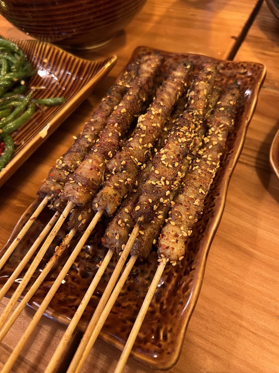 I had a really good time at this Chinese all you can eat barbecue restaurant. The meat is fresh and flavorful, and you can order as much as you want from their wide selection. The price is very affordable, which makes it even better. On top of the barbecue, they also offer cold noodles, kimchi fried rice, and even dessert, so there’s plenty to enjoy beyond the grill. The atmosphere is also worth mentioning, the decor is very classy, with white stones, wooden doors, and elegant Chinese characters on the walls. It adds a nice touch to the overall dining experience.