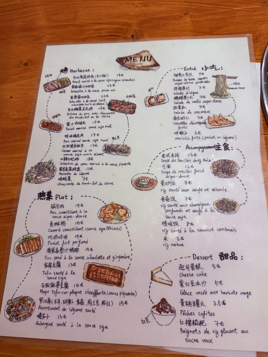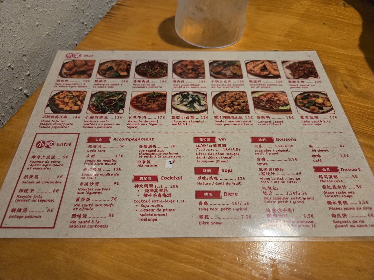 Guests can savor specialties like 锅包肉 (sweet and sour pork), Brochettes d’agneau (lamb skewers), 酸辣土豆丝 (spicy and sour shredded potatoes), or the richly flavored 口水鸡 (mouthwatering chicken). These dishes highlight fresh ingredients and bold, balanced seasonings that pair naturally with the warm, understated atmosphere.